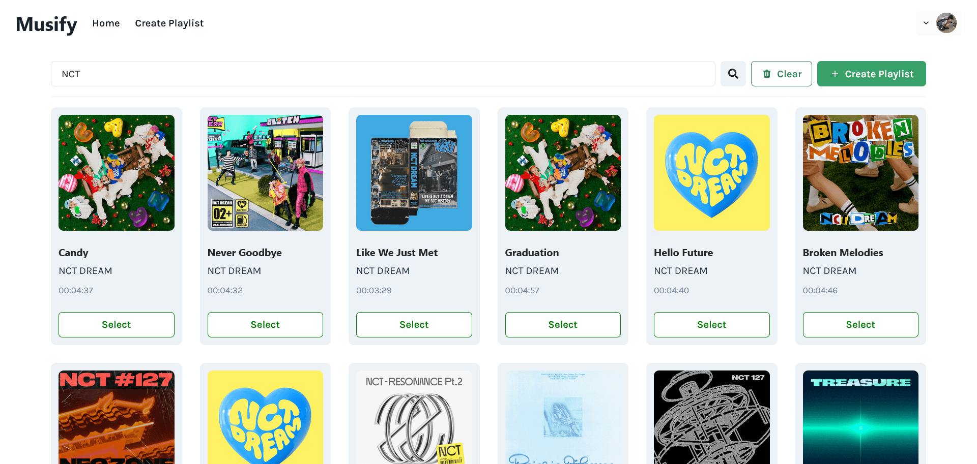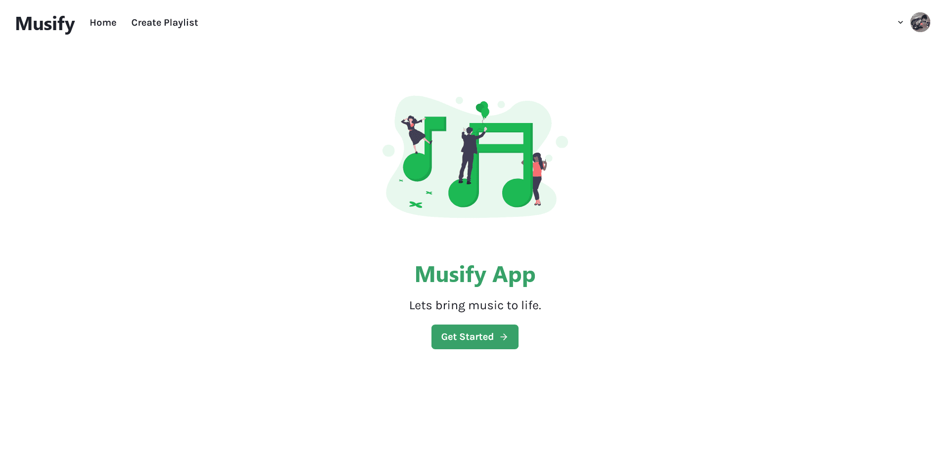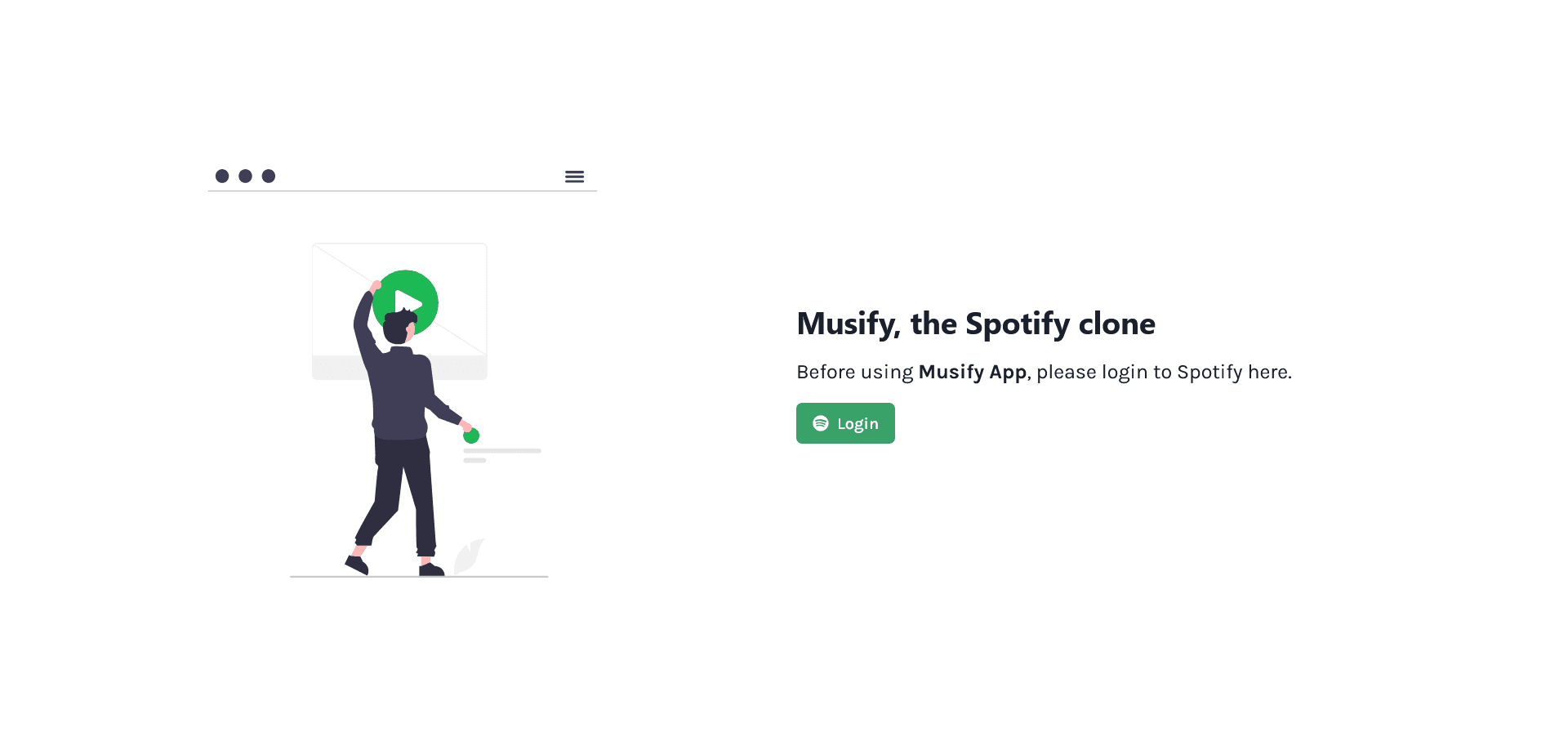 Musify is a web-based music streaming clone inspired by Spotify, designed to explore real-world API integration and state management in React applications. The app allows users to browse songs, view album details, and play music directly using data fetched from the official Spotify API. Built with React.js, Redux, and Chakra UI, the project focuses on clean component structure, dynamic data rendering, and responsive layouts for a seamless user experience across devices.