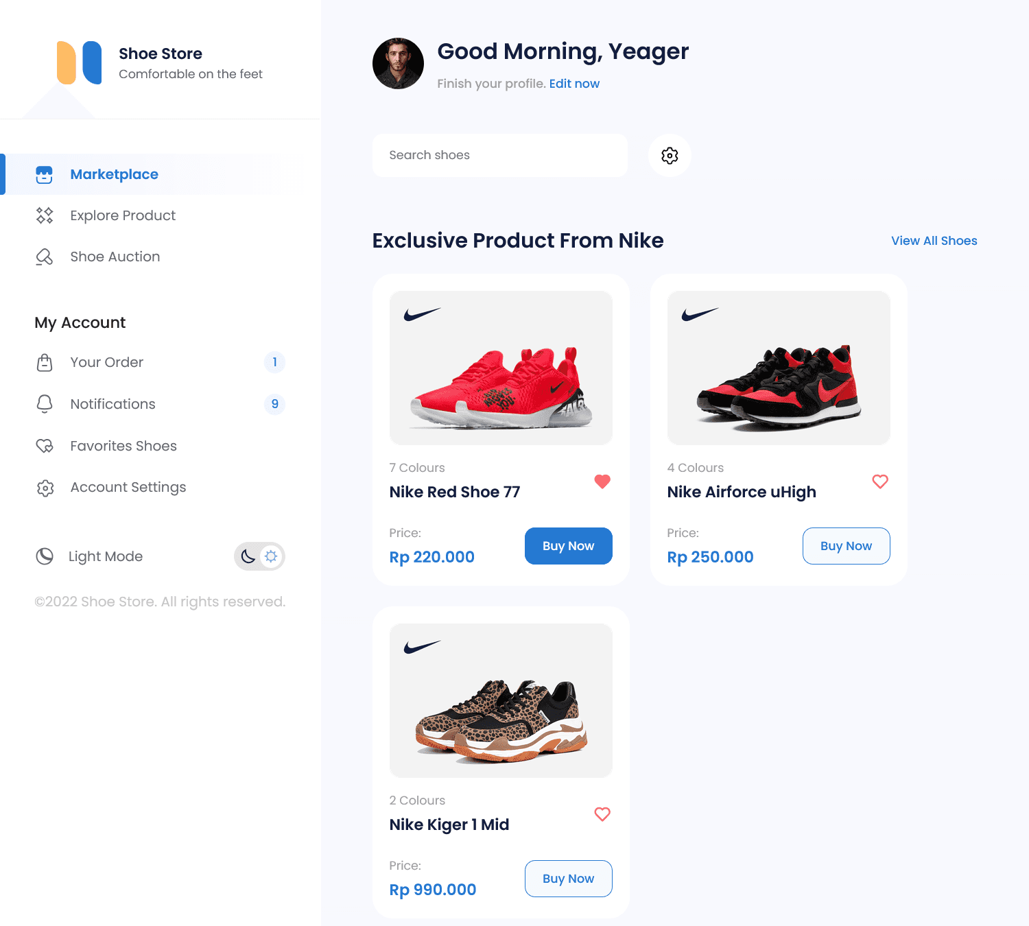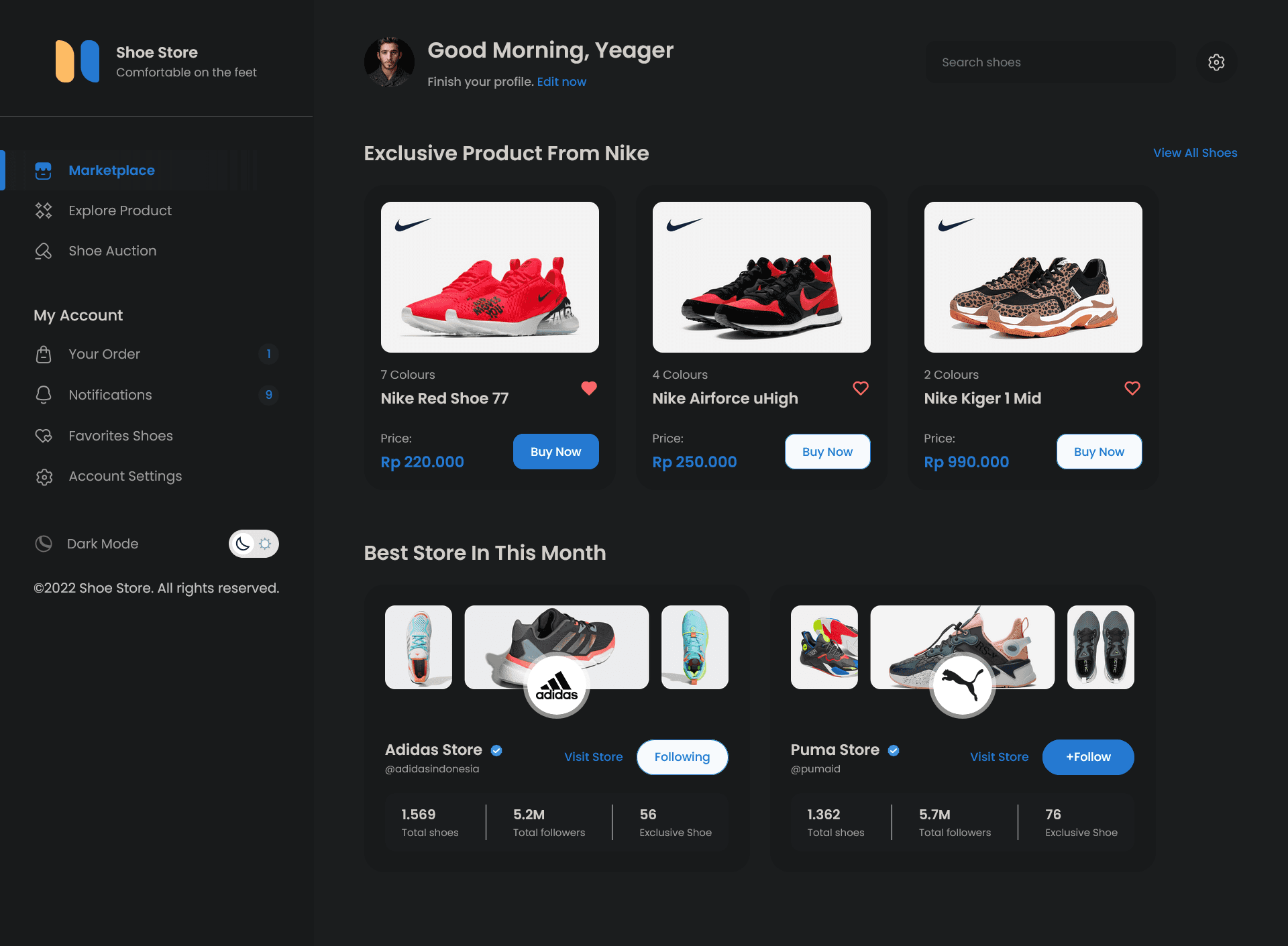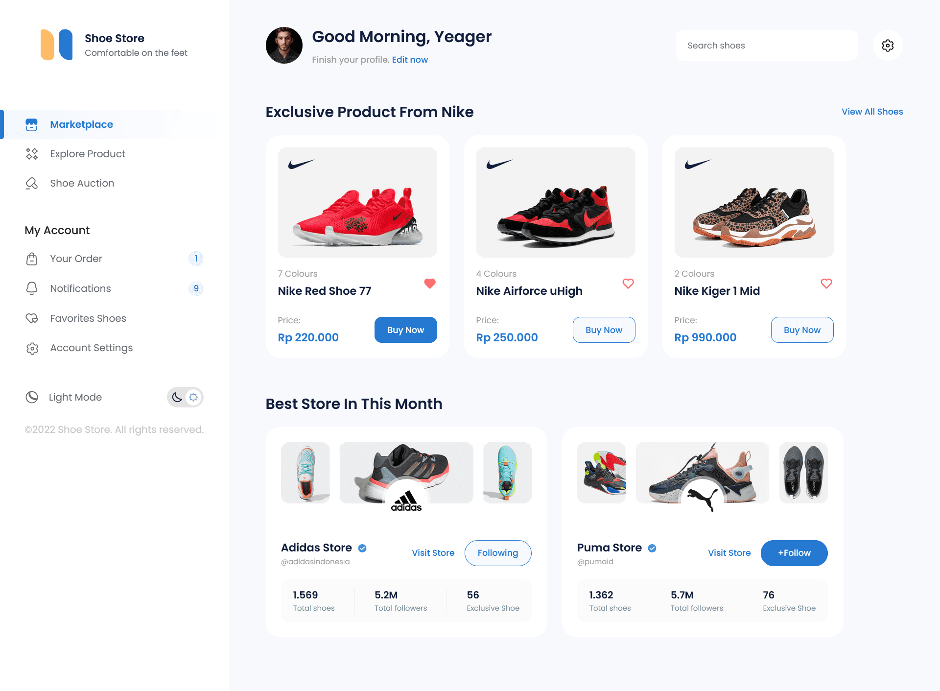 Shoso Marketplace Dashboard — Responsive UI Slicing